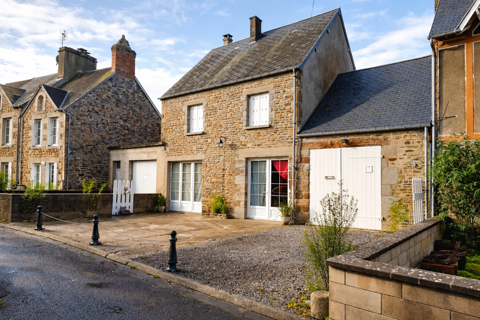 5) Fermeture : portillon extérieur sur la ruelle, porte du garage intérieur et extérieur côté rue du pavé,